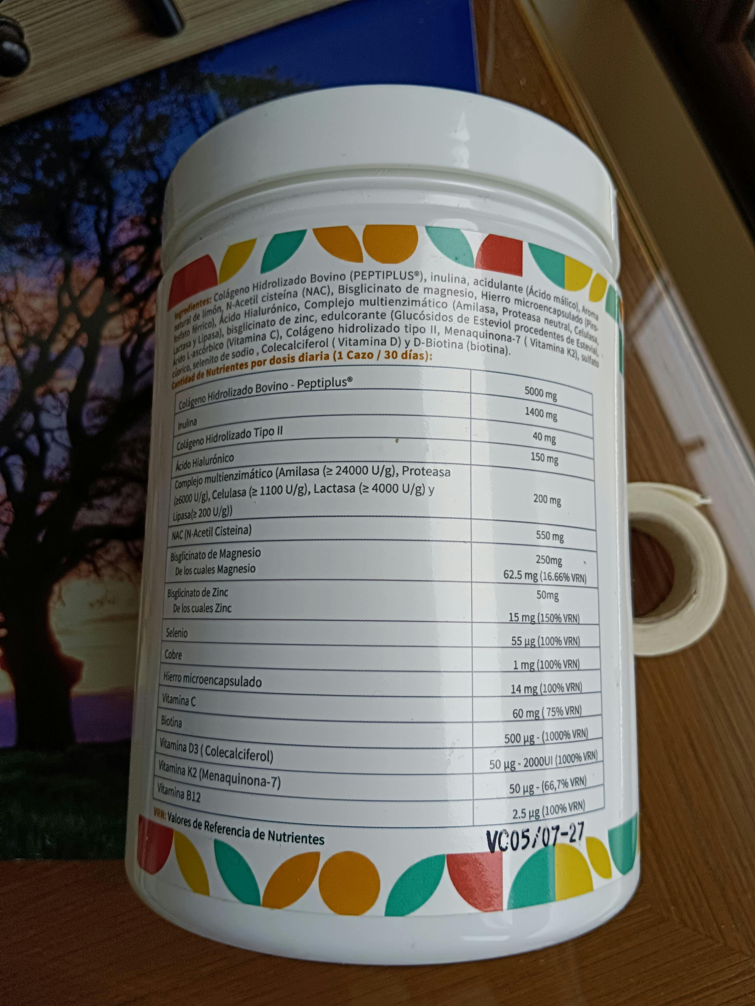 - Cantidad diaria: 1 cazo (10 g) al día, preferiblemente diluido en agua, zumo, leche vegetal o cualquier bebida de tu preferencia.